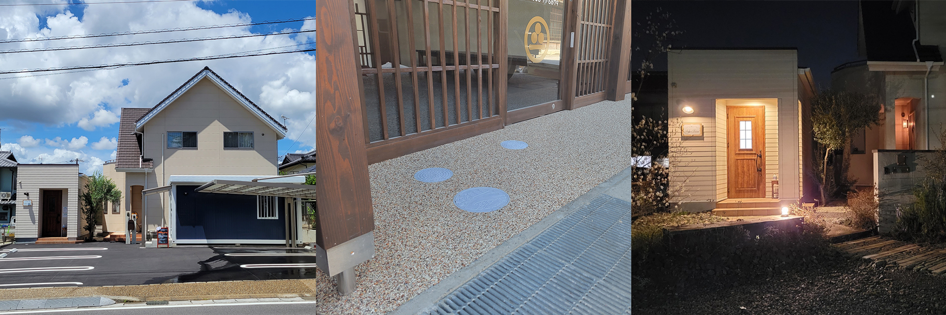 石貼り・砂利・植栽により自然なアプローチを作りました。